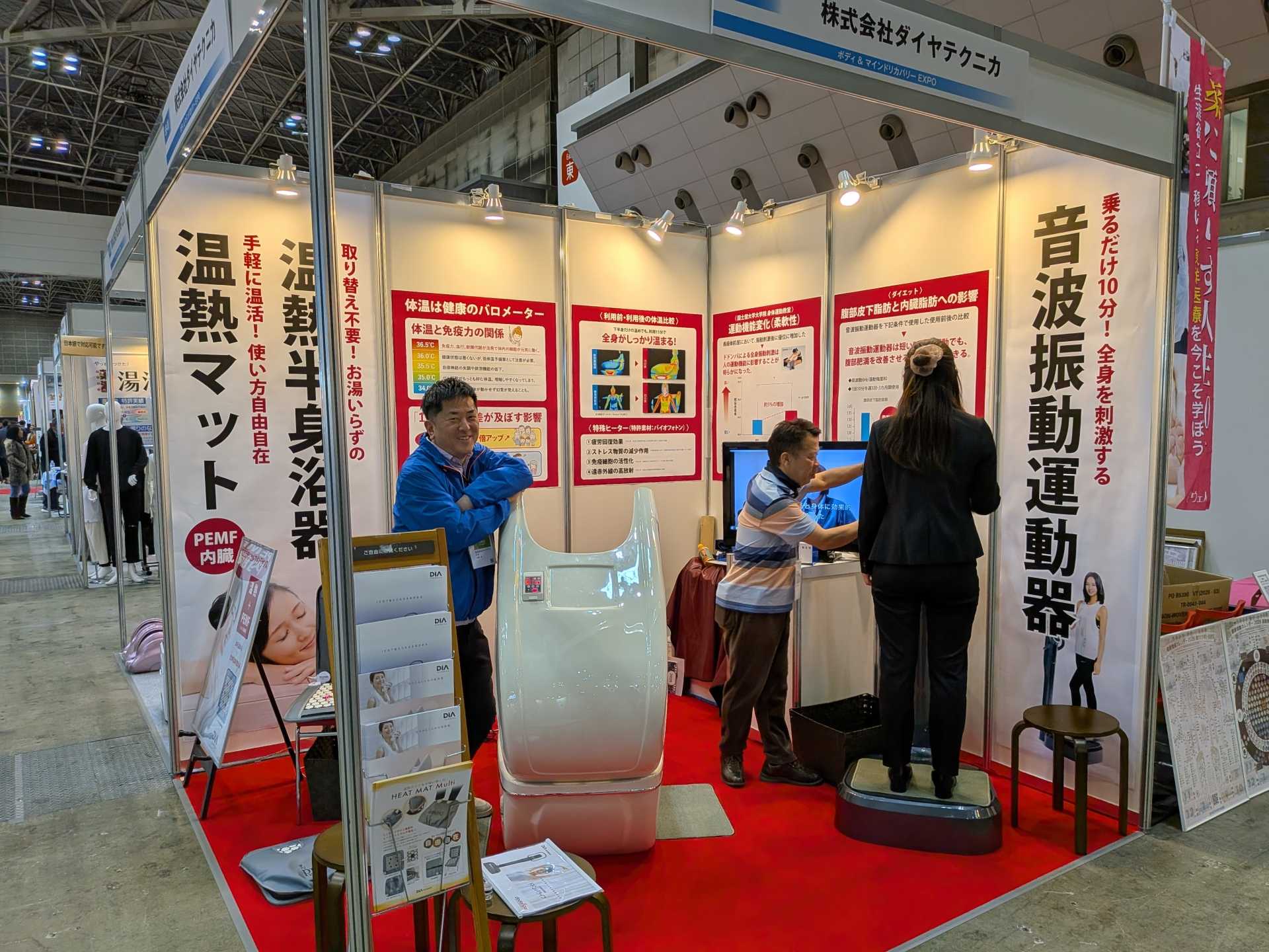 展示した音波振動運動器「ドドンパライフ」、温熱半身浴器「ハーフドーム」、温熱マット「ヒートマットマルチ」を数多くの方に体験いただき、ご好評いただきました。